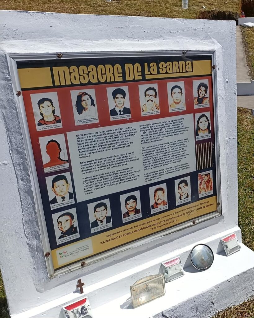El 1 de diciembre de 2001, a la altura del Páramo de La Sarna, en la vía que comunica Sogamoso con Labranzagrande, hombres armados de las Autodefensas Campesinas del Casanare (ACC) detuvieron un bus de la empresa Cootracero y obligaron a descender a sus pasajeros.