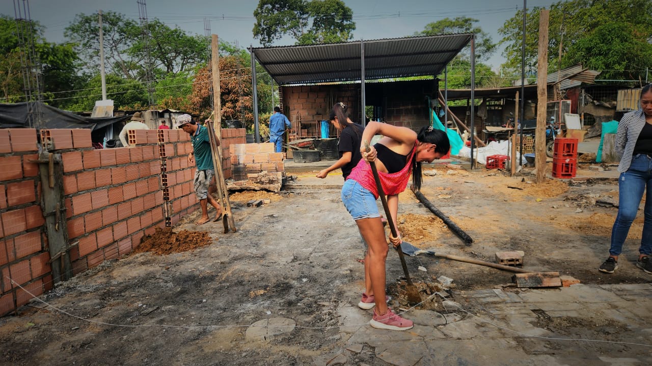 Las familias, con acompañamiento institucional, reconstruyen sus viviendas con mejores materiales. “Cambiamos casas de madera por ladrillo y platos de pasta por porcelana”, señaló Javier Pérez, líder del asentamiento.