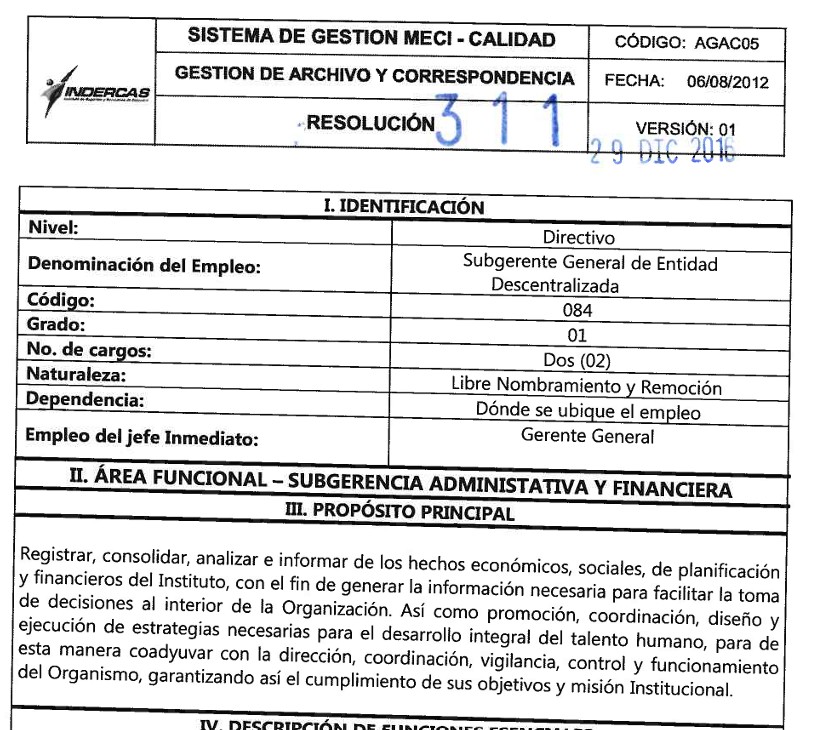 Según el Manual de Funciones de INDERCAS y su estructura orgánica, la subgerencia administrativa y financiera administra presupuesto, maneja procesos contractuales, supervisa ejecución financiera, participa en decisiones administrativas estratégicas y ejerce funciones asociadas al control interno. Se trata de un cargo del nivel directivo dentro de una entidad descentralizada del orden departamental.