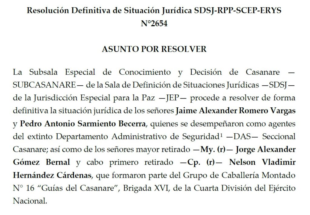 - Primera vez que la JEP concede SCEP y ERYS en un caso de falsos positivos.